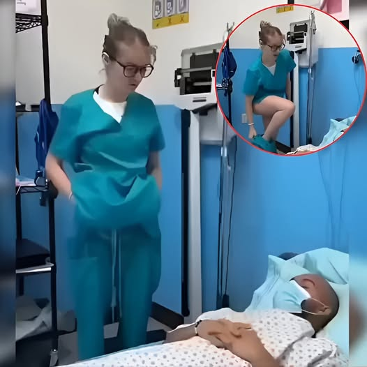According to the staff member who claimed to have seen it, she was standing over her patient in a strange position—half-squat, leaning forward, her uniform stretching slightly as she balanced herself with one hand on the bedrail. The patient, an older man recovering from a minor procedure, was lying still, his expression unreadable. From the doorway, the angle created an illusion far more provocative than the reality.