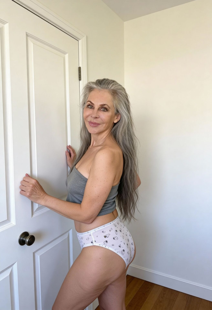 A backward glance is one of the oldest forms of silent communication. It suggests awareness. It suggests invitation. It suggests control. She doesn’t need to speak, because the message is embedded in the timing. She let you watch. And then she acknowledged it.