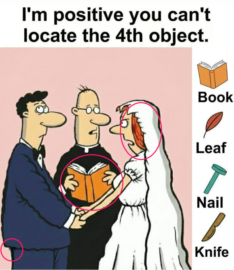 Check out this wedding scene. Everything looks normal, right? But wait! There are actually 4 items hidden in this picture. Most people find the first few in seconds, but almost everyone gets stuck on the last one.