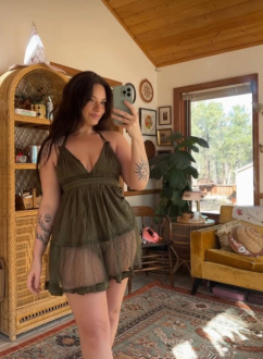 Every shot teases a story—her dress sliding just a fraction too low, a shoulder grazing against yours, eyes darting down, lips parting in the smallest sigh. Some moments are innocent at first glance, but her body language says otherwise: a tilt of her head, a foot brushing yours under the table, a hand lingering too long on her own neck. It’s subtle, but it’s deliberate.